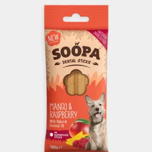 Bâtonnets à mâcher pour chien – Mangue 🥭 et Framboise – Soopa